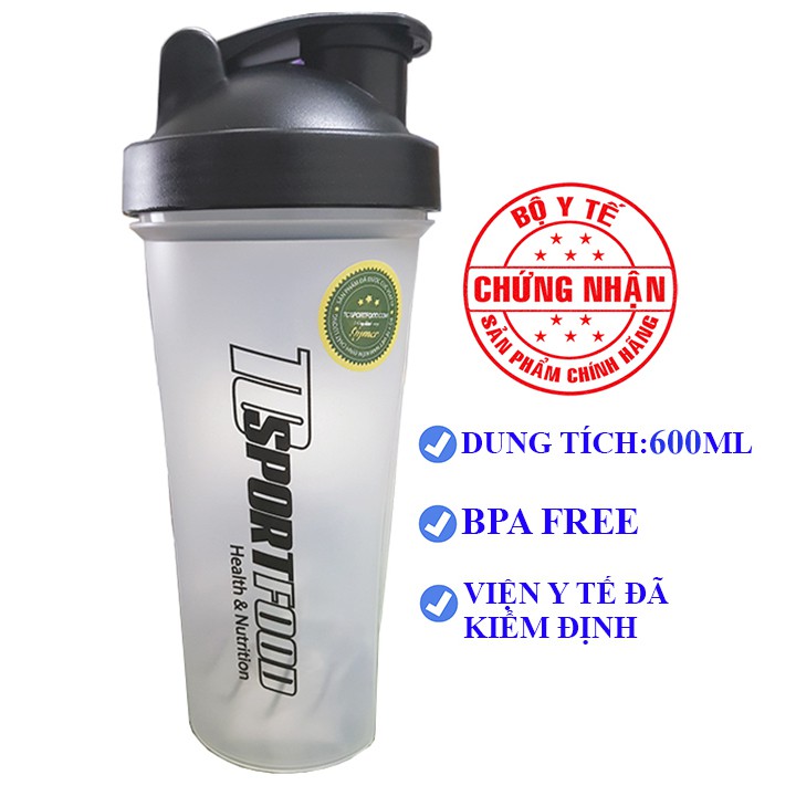 Bình lắc Shaker pha sữa cho người tập GYM - Bình nước thể thao Shaker - 600 ml - chính hãng