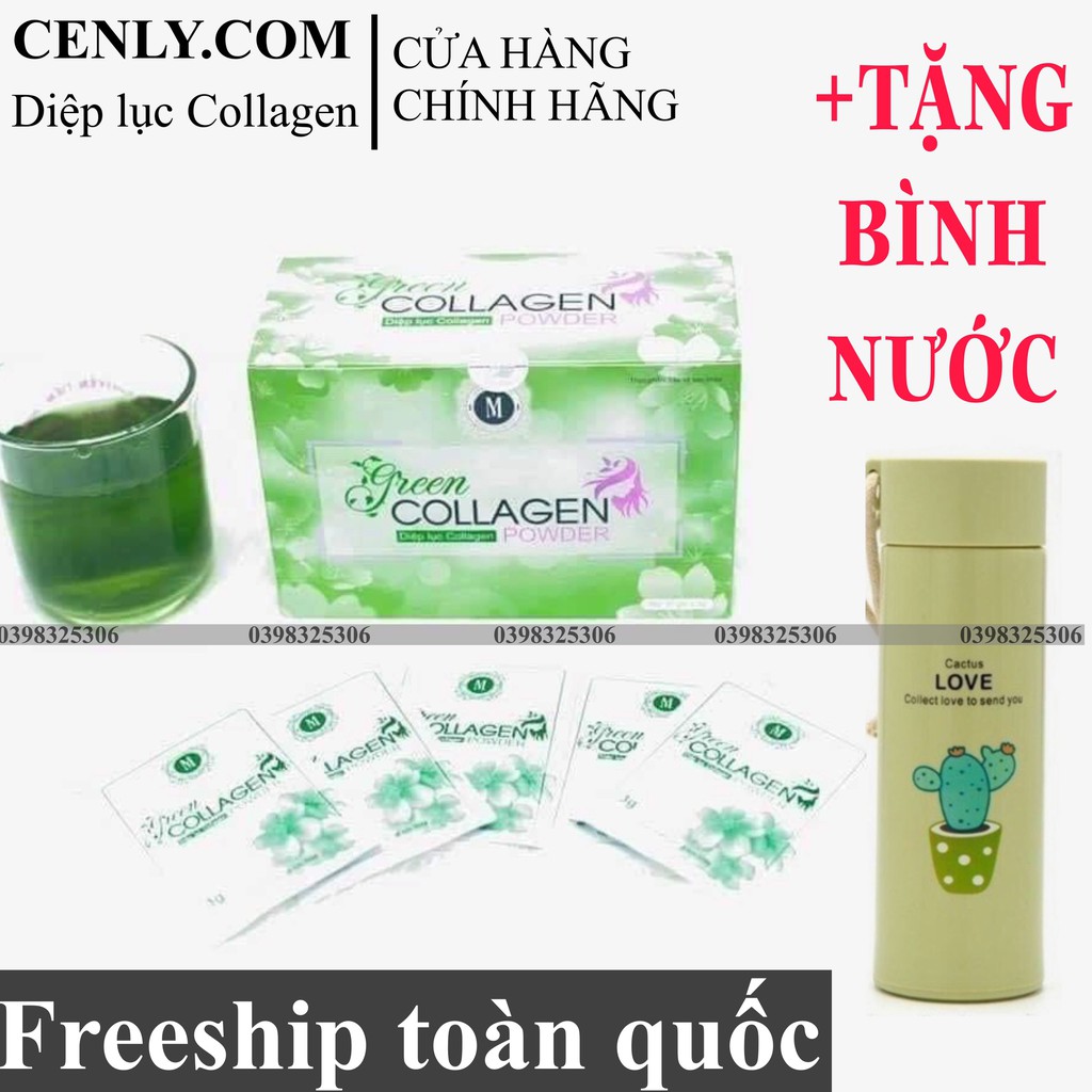 Freeship- [Mã 11FMCGSALE1 giảm 10% đơn 250K] Diệp lục Colagen [TẶNG BÌNH NƯỚC] đẹp da hết mụn mờ thâm nám, bổ sung 1kg rau xanh mua tại đây